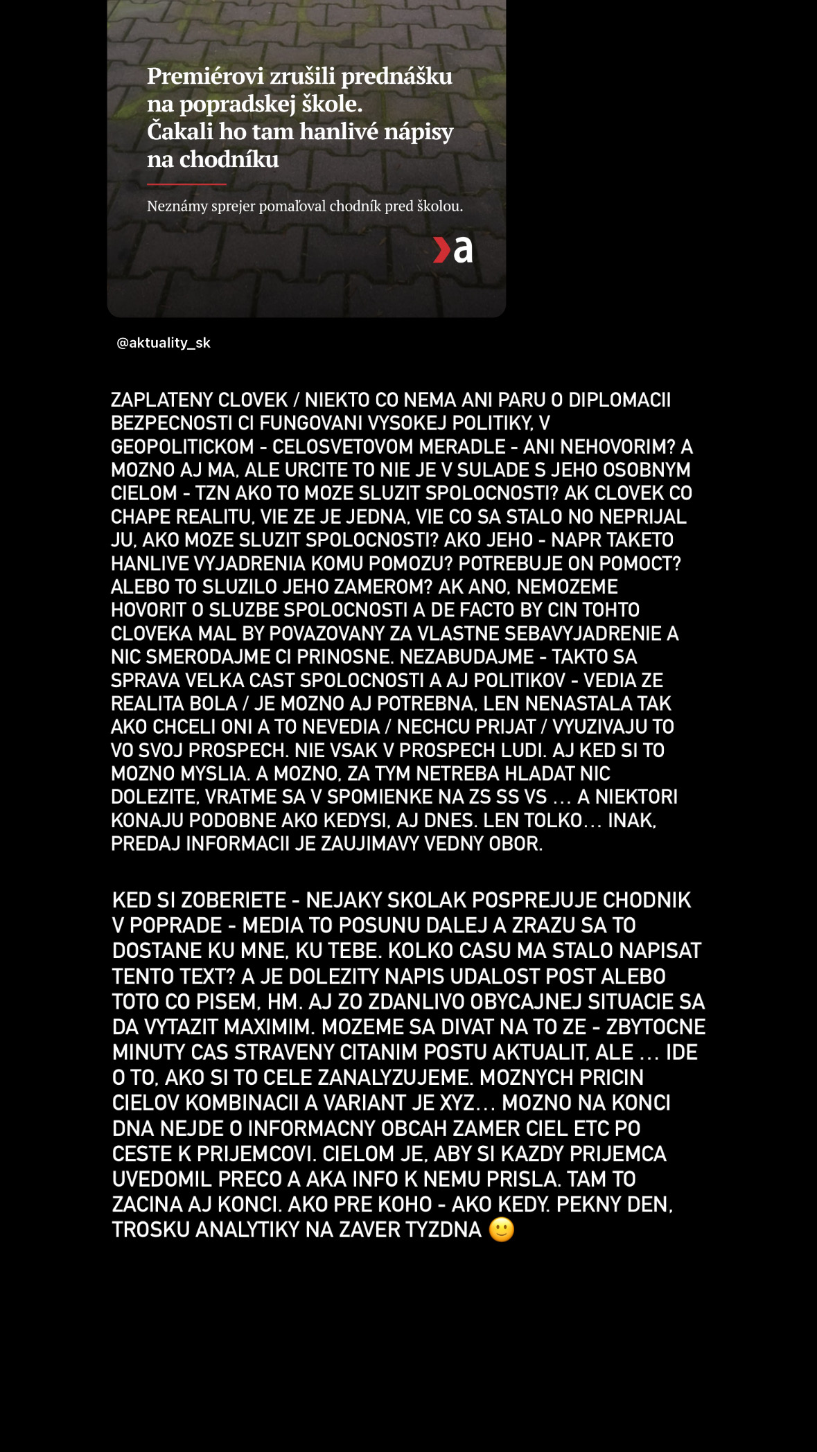 I. Východiskový text – IG story (sprej, premiér, médiá)