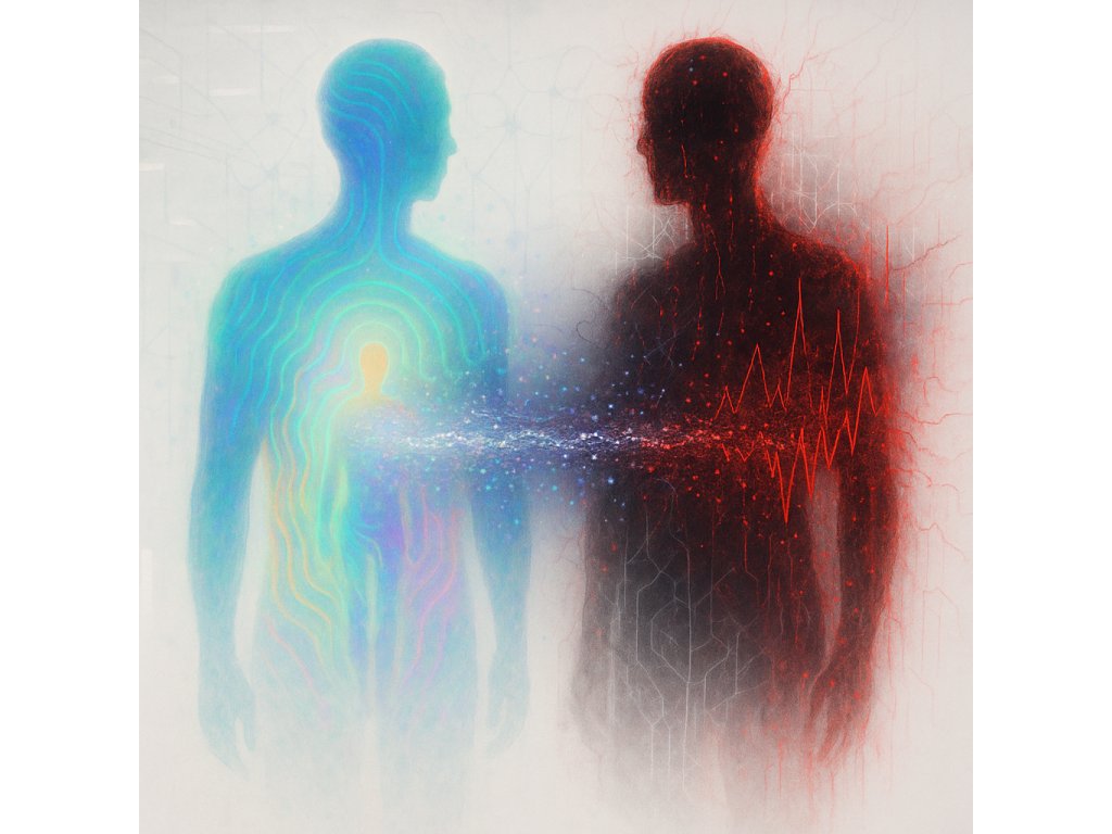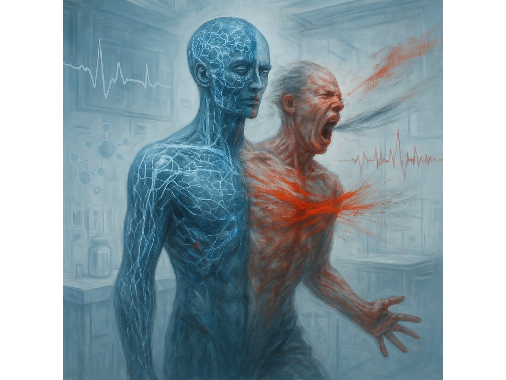 Je to iba skratka pre nesúlad v tej istej regulačnej slučke: mozog (centrálne riadenie) si niečo predpripraví a periféria (orgány, cievy, koža, svaly) odpovie. Keď sa to nezhoduje (časovaním, silou, koherenciou), cítime „veľké reakcie z malých podnetov“. Nie je to dualizmus „psyche vs. soma“, ale jedna fyziologická slučka s dvoma smermi toku informácie (zhora-nadol a zdola-nahor).
